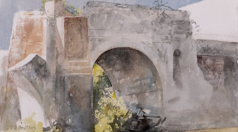 La mostra “Siete e Roma” mette in dialogo il rigore del bianco e nero e la leggerezza degli acquerelli, offrendo una riflessione intensa tra realtà e luce